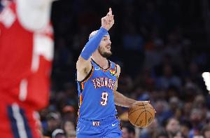 上半场,面对旧主的雷霆球员卡鲁索表现出色,场上依旧是积极主动,攻防两端都有不小贡献,在12分钟的时间里,投篮7中4,三分球3中2,拿到10分4篮板2助攻2抢断的数据,正负值+16。