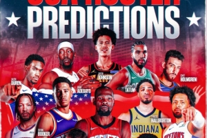 该阵容名单为:杜兰特、布克、哈利伯顿、塔图姆、爱德华兹、康宁汉姆、布伦森、杰伦·约翰逊、弗拉格、霍姆格伦、阿德巴约、杜伦