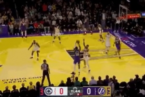 很清楚!东契奇强拔三分后倒地给了三罚 但快船挑战成功